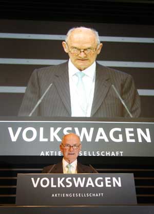 4月19日,歐洲最大汽車制造商大眾公司監(jiān)事會主席皮希在德國漢堡召開的公司年會上講話。大眾公司18日宣布,今年第一季度,由于公司的全球銷量穩(wěn)定增長,其凈利潤比去年同期翻番,達到7.4億歐元。