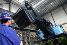 日前,太原重型機(jī)械集團(tuán)有限公司和神華集團(tuán)準(zhǔn)格爾能源公司為WK-35大型礦用挖掘機(jī)舉行了出廠驗(yàn)收會。由太重自主研發(fā)的WK-35礦用挖掘機(jī)是大型露天礦山的開采設(shè)備,可適用于3000萬噸級的大型露天煤礦、鐵礦及有色金屬礦山的剝離和采裝作業(yè)。圖為技術(shù)人員正在試車。 |