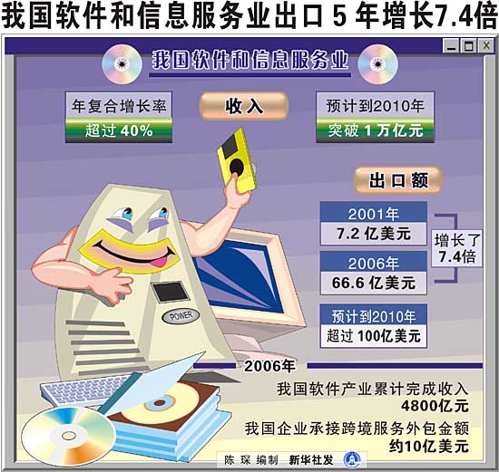 我國(guó)軟件和信息服務(wù)業(yè)出口五年增長(zhǎng)7.4倍