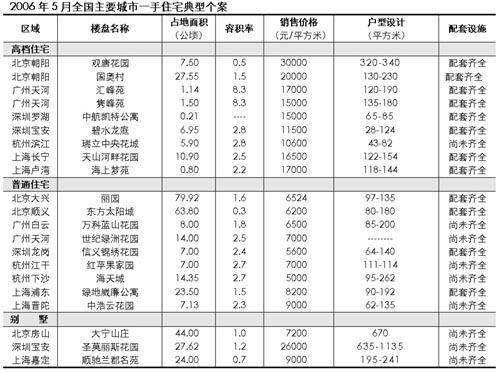2007年5月份全國主要城市一手住宅典型個(gè)案