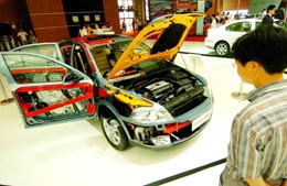 在長春國際會展中心舉行的第五屆中國長春國際汽車博覽會上,一些汽車廠家為了讓參觀者更直觀地了解汽車的內(nèi)部構(gòu)造,專門將汽車“解剖”展出。
