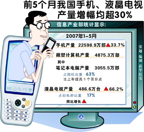前5月我國(guó)手機(jī)、液晶電視產(chǎn)量增幅均超30%
