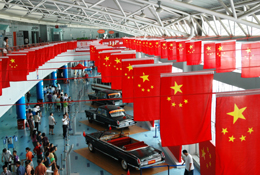 聞名全國的承德“紅旗老爺車王”雒文有此次攜11輛“紅旗老爺車”參加了在長春舉辦的第五屆國際汽博會, 雒文友和“承德老爺車”在全國知名度很高,國際一些車展及文化藝術(shù)節(jié)紛紛邀請其前往助興。此次赴長春國際會展中心參展的“紅旗老爺車”,除那輛“加長大紅旗”故地重游吸引了眾多人的眼球之外,還有1989年雒文有花12萬元買下的聶榮臻元帥坐騎紅旗AC770;毛澤東、周恩來乘坐過的“紅旗保健車”;多個國家首腦乘坐過的紅旗檢閱車;1963年產(chǎn)、李先念乘坐過的CA72009號3面紅旗車、1959年產(chǎn)的賀龍元帥用過的A72010號5面紅旗車;北京市第一任市長彭真坐騎等11輛紅旗車。 雒文有2001年秋天在第二屆長春國際汽車展時瞄上“加長特制大紅旗”車后,2002年3月26日將尋找了11年的這輛“神秘之車”開回承德。此次參加第五屆中國長春國際汽車博覽會,雒文有攜“加長紅旗”重回長春,讓這輛20世紀(jì)70年代毛澤東主席指示“長春一汽研究所”:“要造我們自己最長的車”而于1976年誕生的我國第一臺加長轎車,與長春市民和世界各國著名汽車商見面。
