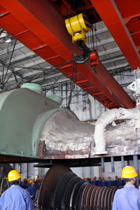 日前,國(guó)電石嘴山第一發(fā)電有限公司的3#行車正在將小火電的汽缸緩緩吊起。當(dāng)天,寧夏回族自治區(qū)在石嘴山市正式關(guān)停了運(yùn)行20多年的4臺(tái)共計(jì)15萬千瓦小火電發(fā)電機(jī)組。截至目前,寧夏已經(jīng)關(guān)停20萬千瓦小型火電機(jī)組!笆晃濉逼陂g,寧夏計(jì)劃關(guān)停74萬千瓦的小型火電機(jī)組。 |