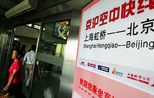 京滬航線被稱為民航的“黃金航線”,是中國最繁忙的商務航線。據(jù)民航總局統(tǒng)計,去年這條航線的旅客運輸量達418萬人次,占全民航客運量的2.98%。在京滬兩個機場之間運營的5家航空公司投入航班的總量達36班。 由于社會公眾對航空運輸?shù)囊笤絹碓礁,中國民航總局牽頭組織國航、東航、南航、上航和海航5等家公司以及相關機場共同打造出了“京滬空中快線”,以提高資源利用率,應對鐵路提速的競爭壓力。 上海虹橋機場已設有專為快線的值機柜臺和安檢和登機口。A航站樓的35至44號柜臺以及4個移動辦票柜臺辦理登機手續(xù);安檢二區(qū)和B1、B2、B3、A7為專設安檢區(qū)和通道;還有2個專用的行李轉(zhuǎn)運盤,集中行李提取。5家公司的以相同的品牌標識、相同的服務承諾,集中在機場的同一區(qū)域內(nèi),進行集中統(tǒng)一運營。5家公司還有統(tǒng)一的熱線電話服務內(nèi)容、標準和流程。熱線電話除服務于本公司,也為其他參與快線運營的公司提供服務!