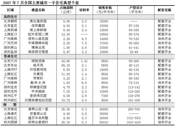 2007年7月全國(guó)主要城市一手住宅典型個(gè)案