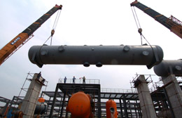中國石化天津100萬噸/年乙烯及配套項目中的6萬噸/年回收裝置重75噸、長22.4米的反應器日前順利吊裝就位。據(jù)介紹,總投資270億元的中國石化天津100萬噸/年乙烯及配套項目計劃在2009年9月投產(chǎn)運行。