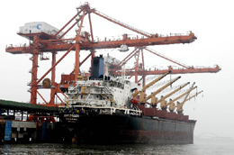河北曹妃甸2005年被列入國(guó)家首批循環(huán)經(jīng)濟(jì)試點(diǎn)園區(qū)。按照總體規(guī)劃,到2010年,曹妃甸港區(qū)將建成4個(gè)25萬噸級(jí)礦石碼頭、1個(gè)30萬噸級(jí)原油碼頭、4個(gè)5萬噸至10萬噸級(jí)煤炭碼頭、1個(gè)10萬噸級(jí)液化天然氣碼頭。圖為一艘外輪停泊在曹妃甸25噸級(jí)礦石碼頭卸載。