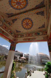 近年來(lái),隨著西藏經(jīng)濟(jì)社會(huì)的飛速發(fā)展和青藏鐵路的開(kāi)通,拉薩房地產(chǎn)業(yè)蓬勃發(fā)展。2003年拉薩第一個(gè)現(xiàn)代化樓盤的成功開(kāi)發(fā)到現(xiàn)在短短幾年,拉薩房地產(chǎn)發(fā)展迅猛,有四十多家國(guó)有民營(yíng)企業(yè)注冊(cè)拉薩房地產(chǎn)開(kāi)發(fā),年均開(kāi)發(fā)項(xiàng)目總面積超過(guò)50萬(wàn)平方米。目前,拉薩房地產(chǎn)呈現(xiàn)出由傳統(tǒng)的獨(dú)棟藏式家居到公寓樓的轉(zhuǎn)型;開(kāi)發(fā)重心由市中心移向郊區(qū);購(gòu)房居住和投資置業(yè)并存等特點(diǎn)。圖藏式廊亭映襯下的水景住宅區(qū)。 |