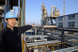 近年來,新疆克拉瑪依石化公司在發(fā)展生產的同時,持續(xù)投入資金加強環(huán)境綜合治理和廢物科學利用。目前已建成4000噸/年的硫磺回收裝置,將過去因處理能力不足,放空燃燒導致環(huán)境污染的二氧化硫,生產為合格的硫磺產品。圖為一位克拉瑪依石化公司的技術人員向來賓介紹新建成的硫磺回收裝置。