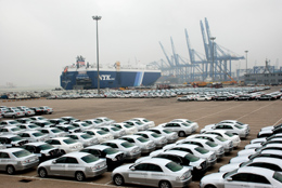 天津港整裝待發(fā)的國(guó)產(chǎn)轎車。新華社發(fā)(扈明