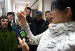 日前,沈陽市殘疾人服務(wù)熱線為聾人開通求助、咨詢等手機短信服務(wù)。聾人用戶只需向服務(wù)中心發(fā)送指定短信號碼,就會得到所需要的法律、低保等方面的信息幫助。圖為沈陽殘疾人服務(wù)熱線的工作人員為聾人講解短信服務(wù)相關(guān)知識。