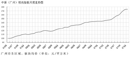 2007年11月,中原(廣州)領(lǐng)先指數(shù)為173.7,比上月增加1個百分點(diǎn),環(huán)比上漲0.6%。中原領(lǐng)先指數(shù)在本月結(jié)束了自今年6月份以來的快速增長,開始以較為穩(wěn)健的步伐小幅向上攀升。即便如此,指數(shù)漲幅與去年同期相比,仍然高出了0.2%。受到樓市觀望情緒持續(xù)、一手樓盤紛紛降價促銷的影響,二手市場的成交速度有所放緩、成交量明顯下降、業(yè)主放盤更加理智是指數(shù)漲幅回歸穩(wěn)健的主要因素之一。部分業(yè)主受到股市下挫、年底資金周轉(zhuǎn)等因素影響,心態(tài)開始軟化,放盤價更貼近市場、更趨向合理,少數(shù)業(yè)主更是主動承擔(dān)交易稅費(fèi),一時間筍盤大量涌現(xiàn),不少買家則看準(zhǔn)了時機(jī)、趁低吸納。