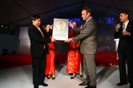 英國(guó)蓮花工程向青年汽車(chē)集團(tuán)董事局主席龐青年授牌。