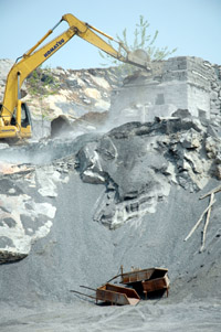 挖掘機(jī)正對礦山違法開采加工點(diǎn)進(jìn)行拆除。 | 礦產(chǎn)資源是我國經(jīng)濟(jì)和社會發(fā)展的物質(zhì)基礎(chǔ)。我國90%的能源、95%以上的工業(yè)和農(nóng)業(yè)原材料都來自于礦產(chǎn)資源。然而,由于隨著人口的快速增長,國家工業(yè)化程度的快速發(fā)展,資源供需矛盾日益突出,我國礦產(chǎn)資源面臨的形勢日益嚴(yán)峻,對外依存度將長期居高,礦產(chǎn)資源能否可持續(xù)供應(yīng)將是全社會關(guān)注的重大問題。 中國工程院院士、礦床地質(zhì)學(xué)家陳毓川日前在云南參加紅河論壇時(shí)表示,我國應(yīng)繼續(xù)實(shí)施找礦戰(zhàn)略,開拓新礦產(chǎn)資源領(lǐng)域,實(shí)施戰(zhàn)略礦產(chǎn)資源儲備等,以保證我國礦產(chǎn)資源的可持續(xù)供應(yīng),解決我國經(jīng)濟(jì)發(fā)展過程中出現(xiàn)的資源制約問題。