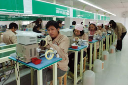 近年來(lái),廣西岑溪市面向東盟大市場(chǎng)加緊開(kāi)發(fā)家電產(chǎn)業(yè),現(xiàn)已開(kāi)發(fā)建設(shè)珠三角·岑溪·東盟家電產(chǎn)業(yè)園,園區(qū)占地4500畝,目前首期開(kāi)發(fā)已建成標(biāo)準(zhǔn)工業(yè)廠房六萬(wàn)多平方米。園區(qū)建成后可成為我國(guó)西部地區(qū)最大的小家電生產(chǎn)基地,年可實(shí)現(xiàn)工業(yè)總產(chǎn)值100億元,年稅收3.5億元,安排就業(yè)三萬(wàn)余人。圖為珠三角·岑溪·東盟家電產(chǎn)業(yè)園一企業(yè)職工在生產(chǎn)家電零配件。 |