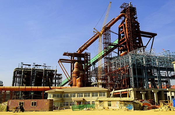 鞍鋼集團在渤海灣建設的年產量650萬噸的鋼鐵廠將于今年下半年正式投產。鞍鋼集團這一新廠緊臨營口港,項目一期工程總投資約300億元,占地8.3平方公里,建設年產650萬噸精品鋼材生產線,包括200萬噸寬厚板、450萬噸熱軋板。圖為即將完成的鞍鋼鲅魚圈精品鋼材基地1號高爐。