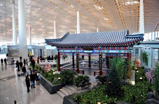 | 文化景觀扮靚首都機場第三航站樓。新華社記者 王建華