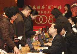 萬(wàn)科日前在上海打折售樓,吸引了眾多消費(fèi)者前來(lái)咨詢。 新華社記者:裴鑫