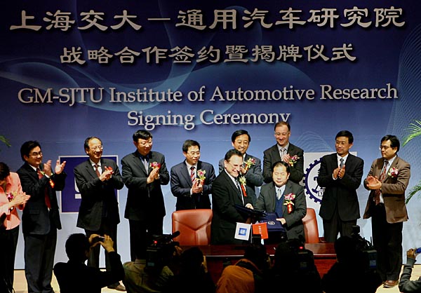 近日,上海交通大學——通用汽車研究院在上海交大正式成立。通用汽車按計劃在未來五年內(nèi)為研究院投入400萬美元,用于推進通用汽車與上海交大在汽車聯(lián)合體技術(shù)研發(fā)及專業(yè)人才培養(yǎng)領(lǐng)域內(nèi)的合作。這是上海交通大學——通用汽車研究院戰(zhàn)略合作簽約儀式現(xiàn)場。