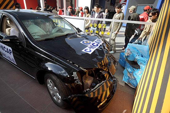中國汽車安全主題巡展3月15日在北京啟程,本次巡展活動為期三個月,主要有安全汽車展覽、安全論壇等活動,包括了向消費者介紹汽車碰撞試驗、交通安全和汽車安全問題等內(nèi)容。觀眾正仔細觀察一家企業(yè)擺放的經(jīng)過碰撞實驗的汽車。