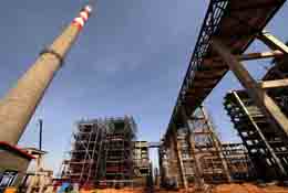 目前,由內(nèi)蒙古伊泰集團有限公司投資逾25億元興建的煤間接液化制油項目正在順利建設(shè)。該項目投產(chǎn)后主要產(chǎn)出柴油、液化石油氣、石腦油等產(chǎn)品,其中優(yōu)質(zhì)柴油占60%至80%左右。圖為伊泰集團煤間接液化制油項目施工現(xiàn)場。