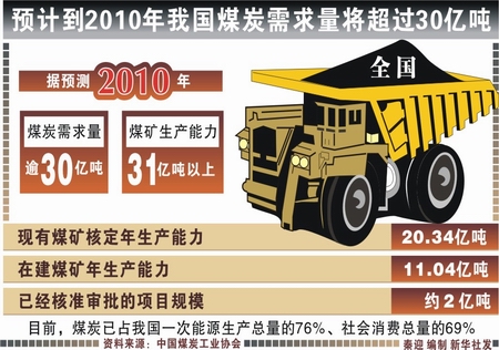 預(yù)計(jì)到2010年我國(guó)煤炭需求量將超過(guò)30億噸