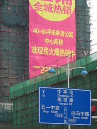 福州鬧市中心新落成的樓盤(pán)展開(kāi)促銷攻勢(shì)。 | 福州、廣州、遼寧鞍山等地樓市在經(jīng)歷了近半年的成交縮量之后,“五一”期間,房地產(chǎn)開(kāi)發(fā)商為抓住小長(zhǎng)假的大商機(jī),紛紛鉚足勁促銷樓盤(pán),掀起一波波促銷“熱浪”。開(kāi)發(fā)商希望借此使今年以來(lái)持續(xù)處于“望季”狀態(tài)的樓市迎來(lái)久違的“旺季”。