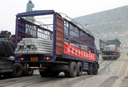 湖北省電力公司根據(jù)國家電網(wǎng)公司要求,急調(diào)5500根水泥電線桿經(jīng)水路運(yùn)往四川災(zāi)區(qū),維修受損電網(wǎng)。為了讓這批救災(zāi)物資順利進(jìn)川,三峽有關(guān)部門開通了三峽專用公路放行。5月17日,運(yùn)送電線桿的車隊(duì)經(jīng)三峽專用公路抵達(dá)湖北秭歸銀杏沱碼頭,在這里乘滾裝船前往重慶萬州,再經(jīng)陸路運(yùn)達(dá)四川災(zāi)區(qū)。新華社發(fā)(劉保平