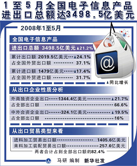 前五月電子信息產(chǎn)品進(jìn)出口總額達(dá)3498.5億美元