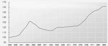 2008年6月,中原(上海)領先指數(shù)為161點,樣本成交均價為18469元/平方米,環(huán)比下跌0.45個百分點,同時二手房成交量也繼續(xù)下滑,環(huán)比上月下降了14個百分點?傮w來說,6月上海二手房市場呈現(xiàn)量價齊跌的態(tài)勢。