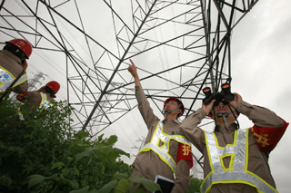 天津市電力公司500千伏變電站、線路進入奧運保電期,高壓供電公司全員上崗?fù)度氡k娮o線工作。