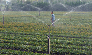 上虞市越泉農(nóng)牧有限公司職工用沼氣殘液澆灌花木。(新華社:韓堅 攝)