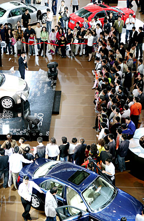 | 10月12日,2008南京國際汽車展覽會在南京國際展覽中心落下帷幕。本屆車展歷時5天,來自國內外53個整車品牌的近400輛乘用車參展,眾多小排量、經濟環(huán)保型乘用車型在車展上受到消費者歡迎。王新
