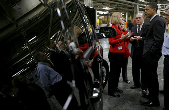 10月13日,通用汽車公司宣布,由于市場(chǎng)萎縮,通用汽車將在今年年底之前關(guān)閉一家位于美國威斯康星州的工廠,該廠成立于1919年,主要生產(chǎn)大型SUV。圖為美國總統(tǒng)候選人奧巴馬2008年2月13日在該工廠參觀時(shí)的資料照片。新華社/路透