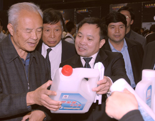 神舟七號(hào)的發(fā)射成功引起了人們對(duì)航天科技的極大關(guān)注。記者在近日舉行的神舟七號(hào)科普展上了解到,神七太空之旅圓滿完成了空間固體潤(rùn)滑材料試驗(yàn)項(xiàng)目,該潤(rùn)滑材料一旦用于汽車可以節(jié)省燃油2%,一年就能為國(guó)家節(jié)約200億元至300億元。圖為中國(guó)石化潤(rùn)滑油公司副總經(jīng)理李亮耀向原國(guó)防科工委副主任懷國(guó)模中將介紹中國(guó)航天潤(rùn)滑技術(shù)。 |