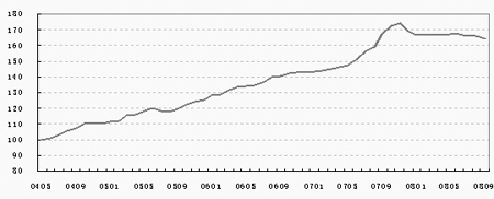 2008年9月,中原(廣州)領(lǐng)先指數(shù)為164點(diǎn),樣本成交均價(jià)為8138元/平方米,環(huán)比下跌1.3個(gè)百分點(diǎn)。廣州住宅市場繼續(xù)觀望,9月份二手住宅的成交面積、成交金額分別有明顯的減少。