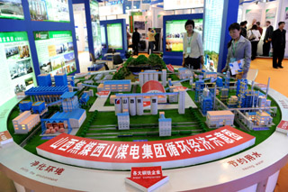 首屆中國(guó)國(guó)際循環(huán)經(jīng)濟(jì)成果交易博覽會(huì)日前在青島舉行,來(lái)自國(guó)內(nèi)外一大批世界領(lǐng)先的循環(huán)經(jīng)濟(jì)技術(shù)和項(xiàng)目紛紛亮相。據(jù)了解,本屆“循博會(huì)”主題為“發(fā)展循環(huán)經(jīng)濟(jì),建設(shè)資源節(jié)約型和環(huán)境友好型社會(huì)”,旨在通過(guò)展會(huì)平臺(tái),全面推廣和應(yīng)用能源資源節(jié)約與環(huán)境保護(hù)技術(shù)與裝備,加快循環(huán)經(jīng)濟(jì)項(xiàng)目與資金對(duì)接,促進(jìn)國(guó)內(nèi)外循環(huán)經(jīng)濟(jì)技術(shù)交流合作,深化循環(huán)經(jīng)濟(jì)理念。圖為觀眾在參觀一企業(yè)循環(huán)經(jīng)濟(jì)示意模型。 |