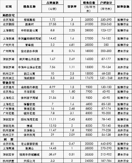 2007年8月全國主要城市一手住宅典型個(gè)案
