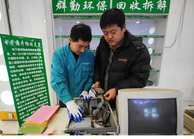 日前,電子廢棄物專業(yè)拆解企業(yè)——哈爾濱群勤環(huán)保技術(shù)服務(wù)有限公司,進駐哈爾濱市高校和科技企業(yè)集中區(qū)的大型電子產(chǎn)品商場“百腦匯”。業(yè)內(nèi)人士認為,這種以“正規(guī)軍”駐店收購形式向電子產(chǎn)品流通和使用人群普及電子垃圾的環(huán)保處置理念,必將受到人們的歡迎。