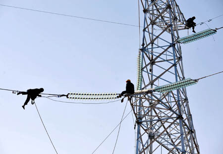 安徽滁州電力職工為京滬高鐵加班改線[圖]