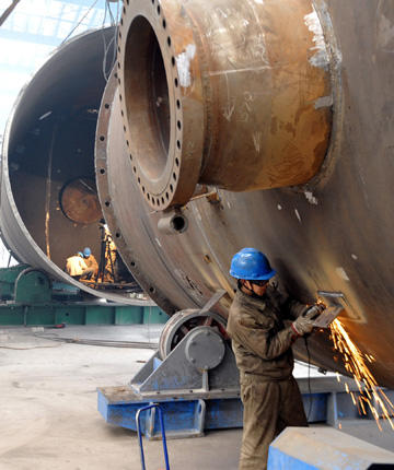 寧夏回族自治區(qū)政府今年將投資320億元,加快寧東能源化工基地建設(shè)步伐,以應(yīng)對當(dāng)前國際金融危機(jī)和國內(nèi)外市場需求變化對當(dāng)?shù)亟?jīng)濟(jì)發(fā)展帶來的不利影響。圖為電焊工人在寧夏神華寧煤集團(tuán)煤化工項(xiàng)目車間加緊施工。