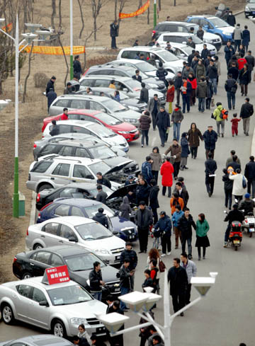 3月15日,市民在沈陽(yáng)五里河公園參觀選購(gòu)汽車。隨著汽車進(jìn)入家庭步伐的加快,交通擁堵、環(huán)境污染等一系列新問(wèn)題又?jǐn)[在了城市管理者的面前,拼車新政等措施應(yīng)運(yùn)而生。張文魁