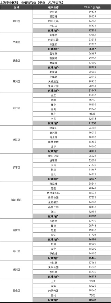 ■上海市各區(qū)域、各板塊均價(jià)(單位:元/平方米)