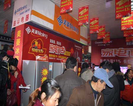 美菱家電下鄉(xiāng)產(chǎn)品銷售火爆。本報(bào)記者:葛如江