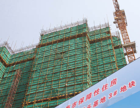 位于上海南匯的一處經(jīng)濟適用房工地(4月21日攝)。據(jù)上海市房管部門介紹,上海在2008年開工建設(shè)400萬平方米經(jīng)濟適用房的基礎(chǔ)上,2009年將再新開工建設(shè)400萬平方米經(jīng)濟適用房。目前,全市已形成浦東三林、南匯航頭、徐匯華涇、閔行浦江等多個保障性住房基地,首批房源將在下半年配售入市。