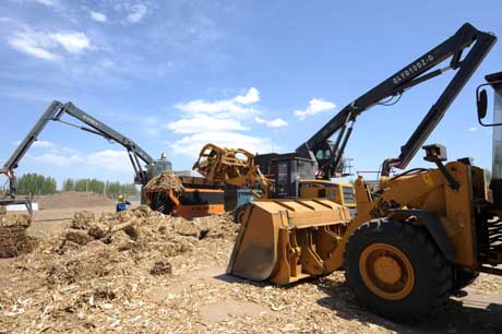 5月3日,位于內(nèi)蒙古赤峰市松山區(qū)安慶工業(yè)園內(nèi)的國(guó)能赤峰生物發(fā)電有限公司原料庫(kù)工人正在裝填秸稈。 國(guó)家能源戰(zhàn)略儲(chǔ)備基地——內(nèi)蒙古自治區(qū)積極探索風(fēng)電、太陽(yáng)能、生物能源利用新技術(shù),與國(guó)內(nèi)大型能源電力企業(yè)聯(lián)手,打造綠色能源基地。2008年初,內(nèi)蒙古率先在資源條件優(yōu)越的赤峰市建成自治區(qū)首家生物發(fā)電機(jī)組,利用周邊農(nóng)區(qū)的秸稈原料進(jìn)行直燃發(fā)電。目前,已投產(chǎn)的一期工程年創(chuàng)7200萬(wàn)千瓦時(shí)的綠色電能,同時(shí)可直接增加農(nóng)民收入2000多萬(wàn)元。整個(gè)項(xiàng)目計(jì)劃投資5億元,規(guī)劃裝機(jī)容量5萬(wàn)千瓦,每年消耗玉米秸稈32.7萬(wàn)噸,年發(fā)電量2.75億千瓦時(shí)! |