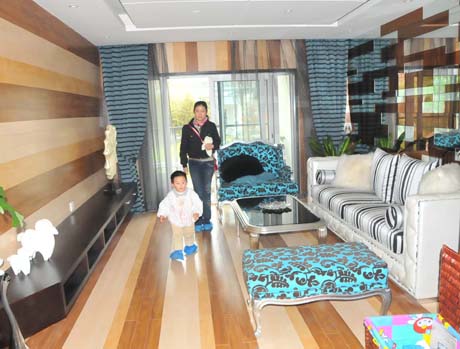 五一期間,一位貴陽(yáng)市民帶著孩子在一家房產(chǎn)開(kāi)發(fā)商的樣板房參觀。新華社記者 黃勇