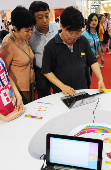 5月17日,參觀者在文博會的一個體驗點體驗G3上網(wǎng)本。 第五屆中國(深圳)國際文化產(chǎn)業(yè)博覽交易會(文博會)正在深圳舉行,本屆文博會首次應(yīng)用3G服務(wù)。 本報記者 陳曄華 攝