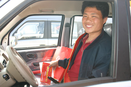 開幕當(dāng)天,現(xiàn)場產(chǎn)生了首位拿到汽車下鄉(xiāng)補貼的農(nóng)村用戶,他就是來自山東省蒼山縣的東風(fēng)小康微車用戶劉銀行。他購買的是一輛東風(fēng)小康K07Ⅱ代,售價38000元,他當(dāng)場拿到的政府補貼為3800元。 本次全國汽車下鄉(xiāng)萬里行活動的最大特點就是“現(xiàn)場”性:即農(nóng)民朋友現(xiàn)場購車后就能現(xiàn)場上牌,現(xiàn)場拿到補貼。劉銀行說,鄉(xiāng)親們聽說能現(xiàn)場拿到政府補貼,所以大家一大早就攜帶好所有手續(xù)趕到臨沂汽車大世界。早上8:30,窗口準(zhǔn)時開窗辦理手續(xù),此時窗外已經(jīng)有一百多人排隊。15分鐘后,劉銀行成為第一個領(lǐng)到了政府補貼的農(nóng)民。 銷售人員介紹,劉銀行購買的東風(fēng)小康K07Ⅱ代,為重慶井口基地生產(chǎn),購買的農(nóng)民除了能享受到國家10%即3800元補貼外,還能在購車時就領(lǐng)到工廠給予的4000元左右的大禮包,這樣購買者實際享受到的優(yōu)惠達(dá)8000元左右。 對此,憨厚的劉銀行有些激動,他用有些顫抖的聲音說,自己一家8口,在當(dāng)?shù)刂饕詣?wù)農(nóng)為生,這次借了部分錢來購車,就是想從事建材和裝飾材料運輸業(yè)。政府和廠家給予的8000元補貼大大減輕了自己的經(jīng)濟負(fù)擔(dān)。 |
